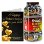Swad Happy Anniversary Friends Gift with Card (Swad Mixed Flavours Candy 150 Jar & 1 Greeting card) 2 units Happy Anniversary Friends Gift with Card hamper gifts best unique for greeting message customised customized personalised personalized candy toffee candi chocolate hamper boxSwad Trust Since 1986: India's favourite Digestive confectionery candy brand since 1986. A quality product by Panjon Limited.Swad Mixed Candy Jar is made of assorter fruit chewy candy flavours: Kaccha Aam Meetha Pan Imli Cola Coffee & Orange with Vitamin C chocolates mix.Swad Candies helps in digestion & acidity. Its signature taste is relished by all age groups.Try all Swad Mouth fresheners: Mukhwas Paan Anardana Imli Khajoor Amla Aam Papad Saunf & Navratan Mix.