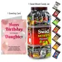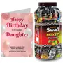 Swad Happy Birthday Gift for Daughter / Beti with Card (Swad Mixed Flavours Candy 150 Jar & 1 Greeting card) 2 units Happy Birthday beti daughter daughters Gift with Card hamper gifts best unique for greeting message customised customized personalised personalized candy toffee candi chocolate hamper box