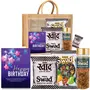 Swad Happy Birthday Gift Hamper Set (Mixed Toffee & Rosted Saunf & Regular 25 Candies Packet Pachak Mukhwas Mouthfreshener 25 Candy & 2 bottle) with Greeting Card & Jute BagGift Item