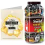 Swad Happy Birthday Mama Gift with Card (Swad Mixed Flavours Candy 150 Jar & 1 Greeting card) 2 units Happy Birthday Mama Gift with Card hamper gifts best unique for greeting message customised customized personalised personalized candy toffee candi chocolate hamper boxSwad Trust Since 1986: India's favourite Digestive confectionery candy brand since 1986. A quality product by Panjon Limited.Swad Mixed Candy Jar is made of assorter fruit chewy candy flavours: Kaccha Aam Meetha Pan Imli Cola Coffee & Orange with Vitamin C chocolates mix.Swad Candies helps in digestion & acidity. Its signature taste is relished by all age groups.Try all Swad Mouth fresheners: Mukhwas Paan Anardana Imli Khajoor Amla Aam Papad Saunf & Navratan Mix.