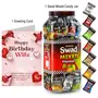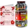 Swad Happy Birthday Wife Gift with Card (Swad Mixed Flavours Candy 150 Jar & 1 Greeting card) 2 units Happy Birthday Wife Gift with Card hamper gifts best unique for greeting message customised customized personalised personalized candy toffee candi chocolate hamper boxSwad Trust Since 1986: India's favourite Digestive confectionery candy brand since 1986. A quality product by Panjon Limited.Swad Mixed Candy Jar is made of assorter fruit chewy candy flavours: Kaccha Aam Meetha Pan Imli Cola Coffee & Orange with Vitamin C chocolates mix.Swad Candies helps in digestion & acidity. Its signature taste is relished by all age groups.Try all Swad Mouth fresheners: Mukhwas Paan Anardana Imli Khajoor Amla Aam Papad Saunf & Navratan Mix.