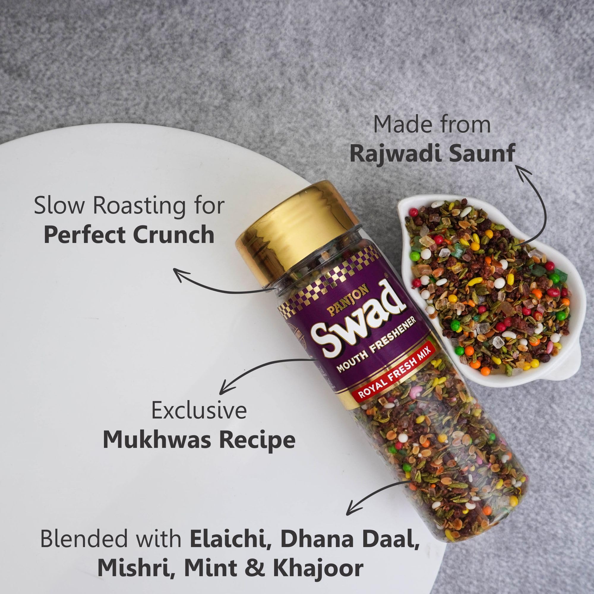 Swad Mukhwas Royal Fresh Mix 110 gms Hygienically Made in Small Batches Traditional Indian Sweet Mouthfreshener Pachak Mukvas Tasty Candy Saunf After-Meal Snack Mukhwas.