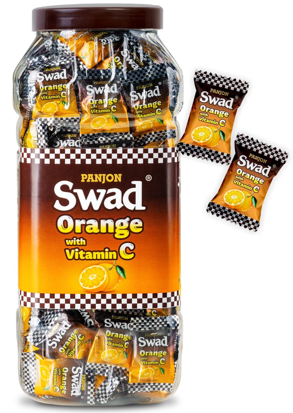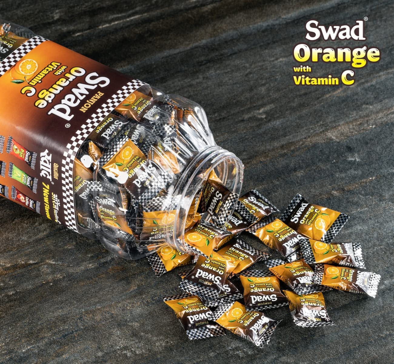 Swad Orange Candy enriched with Vitamin C | Flavored Sugar Candy | Orange Bite | 200 Toffee Jar