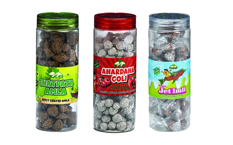 3 PC COMBO PACK OF TULSI ANARDANA GOLI JET IMLI & CHATPATA AMLA. A RICH COMBINATION OF ANARDANA (POMEGRANATE) & GULKAND(PREPARED FROM CRUSHED ROSE PETALS) & RICH INDIAN SPICES GIVES ANARDANA GOLI A UNIQUE MOUTH WATERING TASTE. "ANAR KA SWAAD JO SADA RAHE YAAD" JET IMLI IS TANGY IMLI PREPARATION COATED WITH SUGAR. ITS WRAPPED IN FORM OF A TOFFEE. ANYTIME IMLI GOLI READY TO POP. CHATPATA AMLA IS FRESH SWEETENED AMLA COATED WITH CHATPATA MASALA. A REAL TREAT FOR AMLA LOVERS.....FULL OF VITAMIN C TO BOOST IMMUNITY.