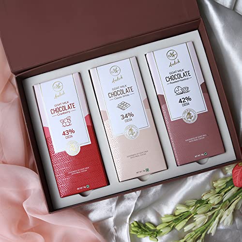 Aadvik Goat Milk Chocolate Gift Box Pack of 3 Classic White Roasted Hazelnut Cranberry 210g
