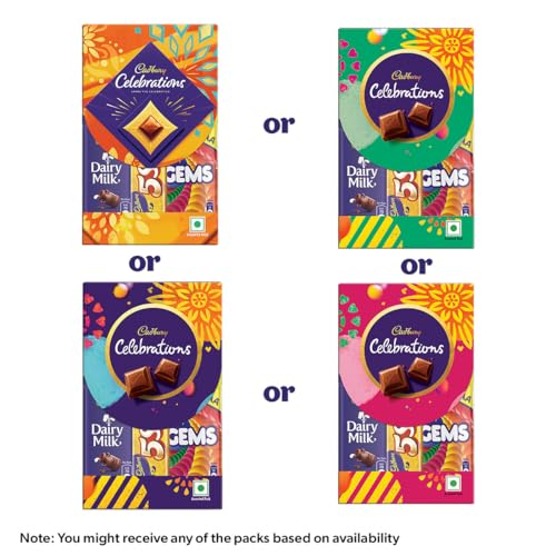 Kuch achha ho jaaye kuch meetha ho jaaye with Cadbury Celebrations. Filled with the goodness of Cadbury chocolates the perfect gift for those whose presence makes every occasion perfect. Made with love a chocolate box meant for every occasion-a Rakhi gift for your brother or sister a special one's Birthday Diwali with family create moments to cherish with Cadbury. This assorted chocolates gift pack contains 1 Unit of Cadbury 5 Star -20g 2 Units of Cadbury Gems -7.9g 2 Units of Cadbury Dairy Milk Chocolate -12g.Perfect for gifting your loved ones on every occasion. Store this in a cool dry and hygienic place as per back of pack instructions. Just like every bar of Cadbury Dairy Milk this is suitable for vegetarians.