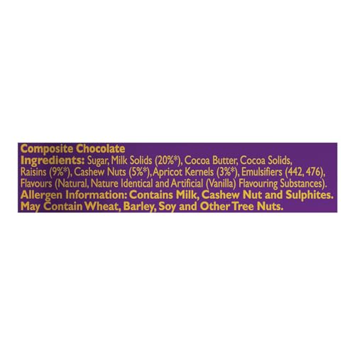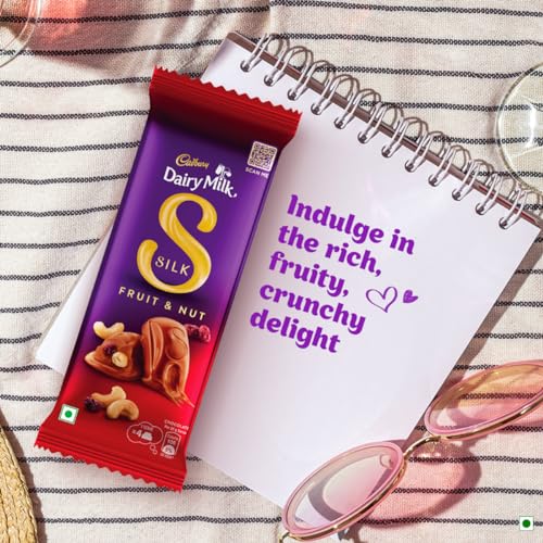 Cadbury Dairy Milk Silk is all about regaling in the richness and creaminess of chocolate. Indulge in a rich smooth and creamy celebration. Silk: The classic taste of Cadbury Dairy Milk chocolates only more creamy more smooth more indulging. Cadbury Dairy Milk Silk Fruit and Nut is made with a glass and a half of milk and offers a delicious combination of combination of creamy milk chocolate and almonds & raisins. This milk chocolate bar is a perfect sweet to indulge in all alone or as a chocolate gift pack for gifting on special occasions like birthdays and get-togethers. Every bar of Cadbury Dairy Milk Silk is made from 100% sustainably sourced cocoa. It is suitable for vegetarians.