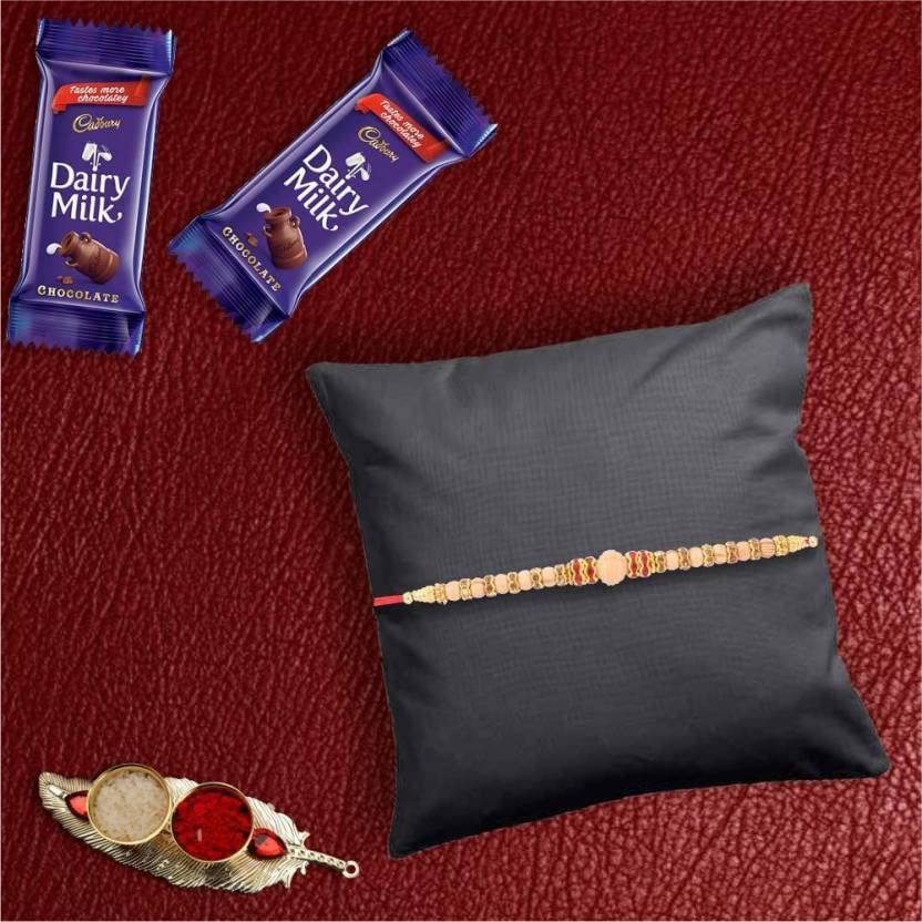 Cadbury Premium Combo (1 Sukhad Rakhi and 2 Cadbury's Dairy Milk(13.2g) Chocolate bar. Note: Rakhi with Roli Chawal Chandan Misri.)