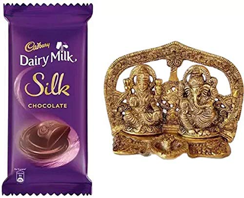 Cadbury Silk Chocolates With Metal Finish Laxmi Ganesh Idol Combo (Cadbury Silk Chocolate 60 g - 1 Metal Finish Laxmi Ganesh Idol On Singhasan - 1)