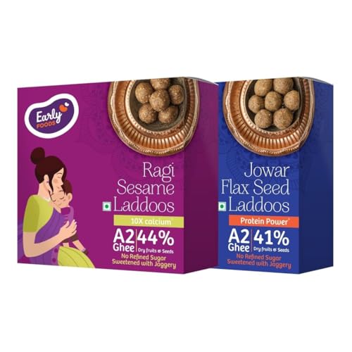 Early Foods Assorted Pack of 2: A2 gramshee Ragi Til Laddu & Jowar Flaxseed Laddoo with Jaggery | Ragi Sesame & Flax Seed Laddu | Pregnancy Laddu | postpartum ladoo | Sugar Free Laddu