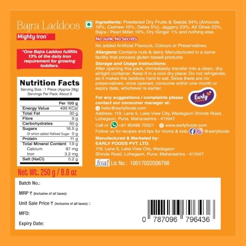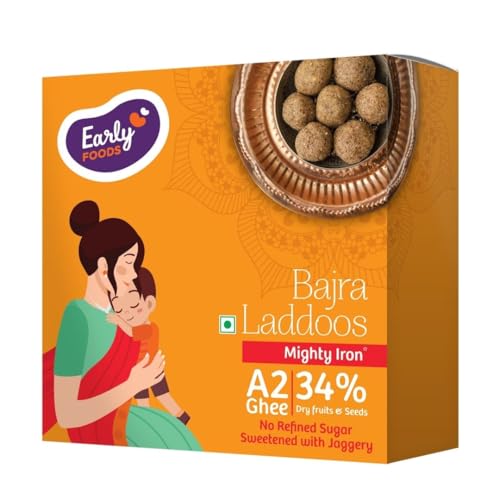 Early Foods - Bajra Laddoo 250 gms | Mighty Iron | Sugar Free Laddu | A2 Ghee Laddoos | Laddoos for Kids