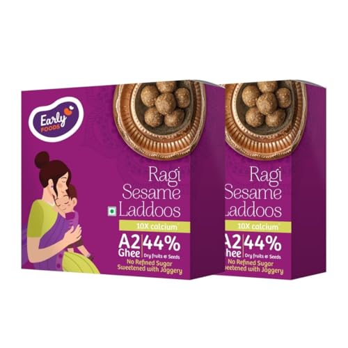 Early Foods Pack of 2: A2 Ghee Ragi Til Laddu with Jaggery | Sugar Free Laddu | Desi Ghee Laddoos | Ragi & Til Laddu | postpartum ladoo | nuvvula laddu