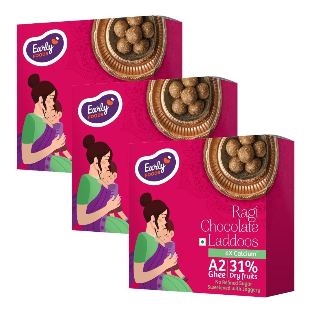 Early Foods Pack of 3: A2 Ghee Ragi Chocolate Laddoos | Ragi Laddu | A2 Ghee Laddu | Pregnancy Laddu | Calcium Laddoo | postpartum ladoo | Gluten Free Snack