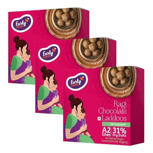 Early Foods Pack of 3: A2 gramshee Ragi Chocolate Laddoos | Ragi Laddu | A2 gramshee Laddu | Pregnancy Laddu | Calcium Laddoo | postpartum ladoo | Gluten Free Snack
