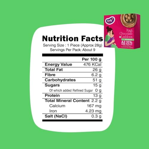 100% CLEAN INGREDIENTS: Our Ragi Laddu with Jaggery is crafted with the finest quality A2 Ghee Jaggery Raw Cacoa and a premium selection of dry fruits ensuring purity in every bite.