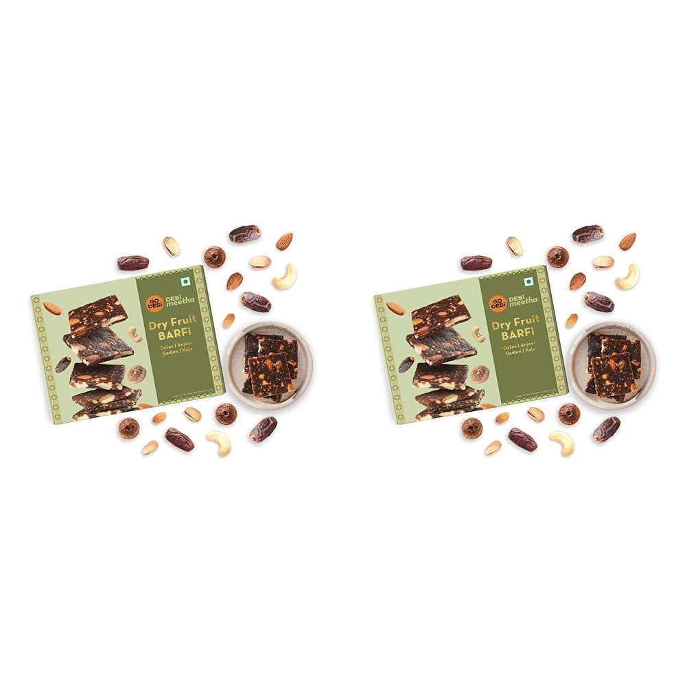 GO DESi Dry Fruits Barfi | 200 grams burfi | Gift for Sister and Brother | Indian Sweets Gift Pack | Dates Bar | Anjeer | Khajoor | Nuts | Sweets Indian Mithai (Pack of 2)