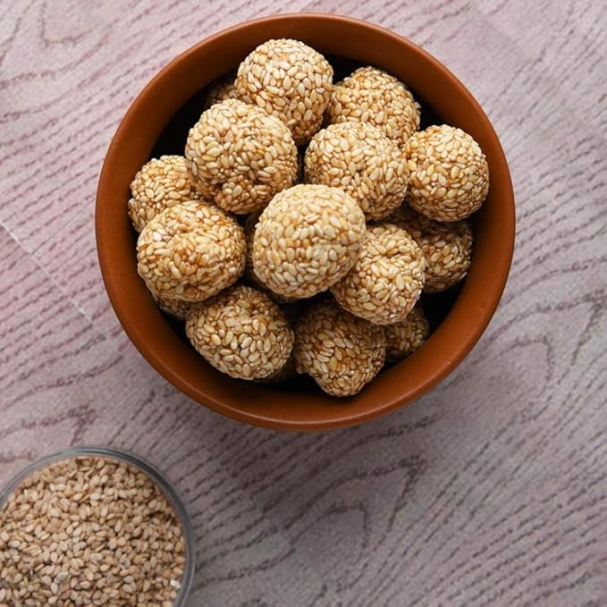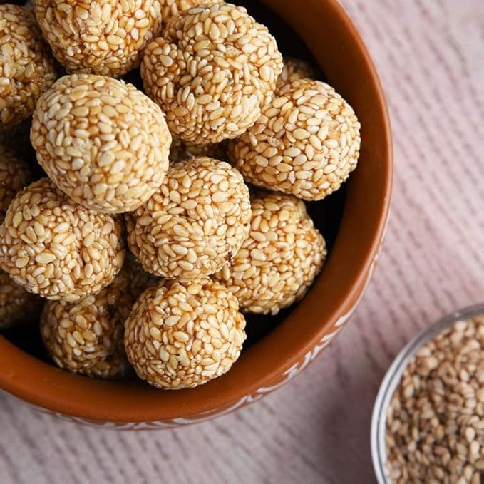 Awadh-White Sesame Laddoos490gm (Til-Gud Laddoos HandMade with Pure Jaggery) Roasted Sesame Laddoo