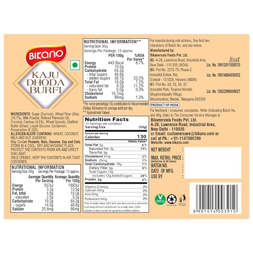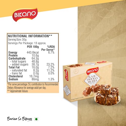 Bikano Kaju Dhoda Burfi | Rich Cashew Delight Infused with Coconut & Cardamom | Traditional Indian Sweet | 400g