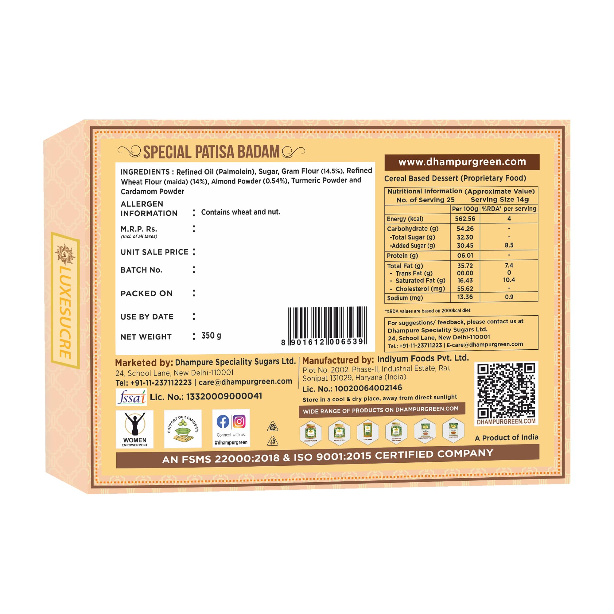 Dhampurgreen Patisa Badam 350g | Sweets Gift Hamper| Indian Sweets | Mithai | Gift