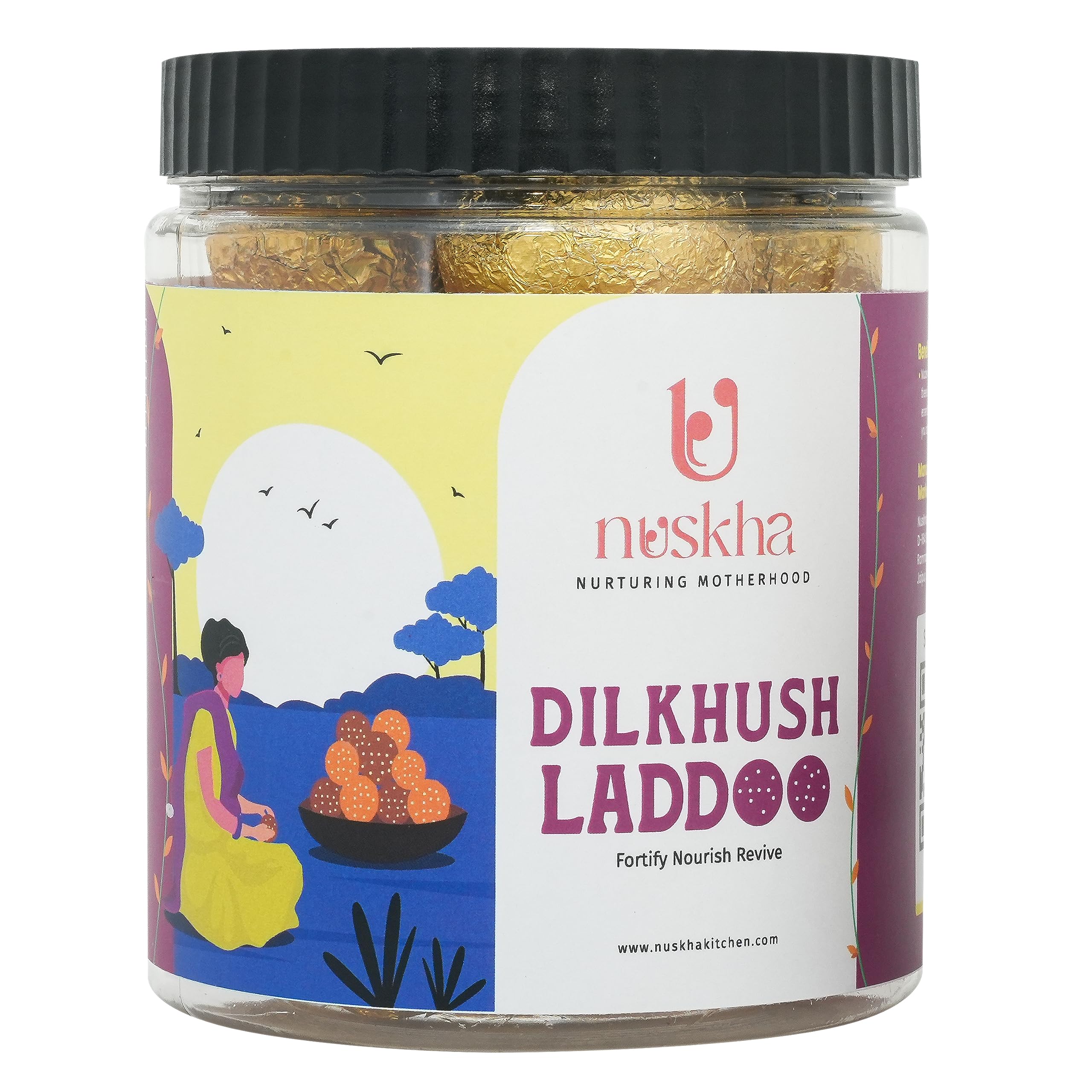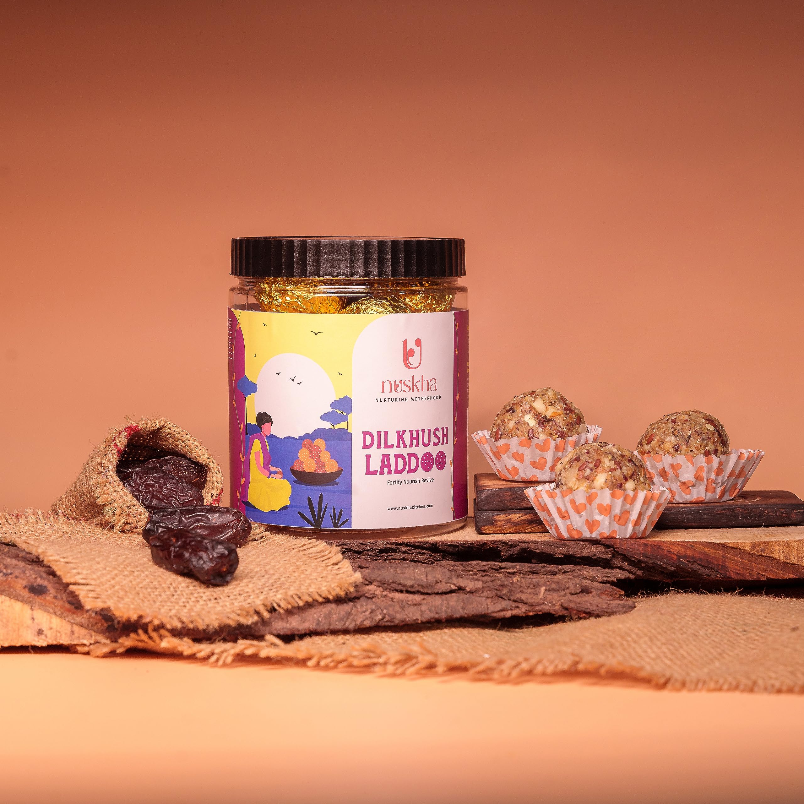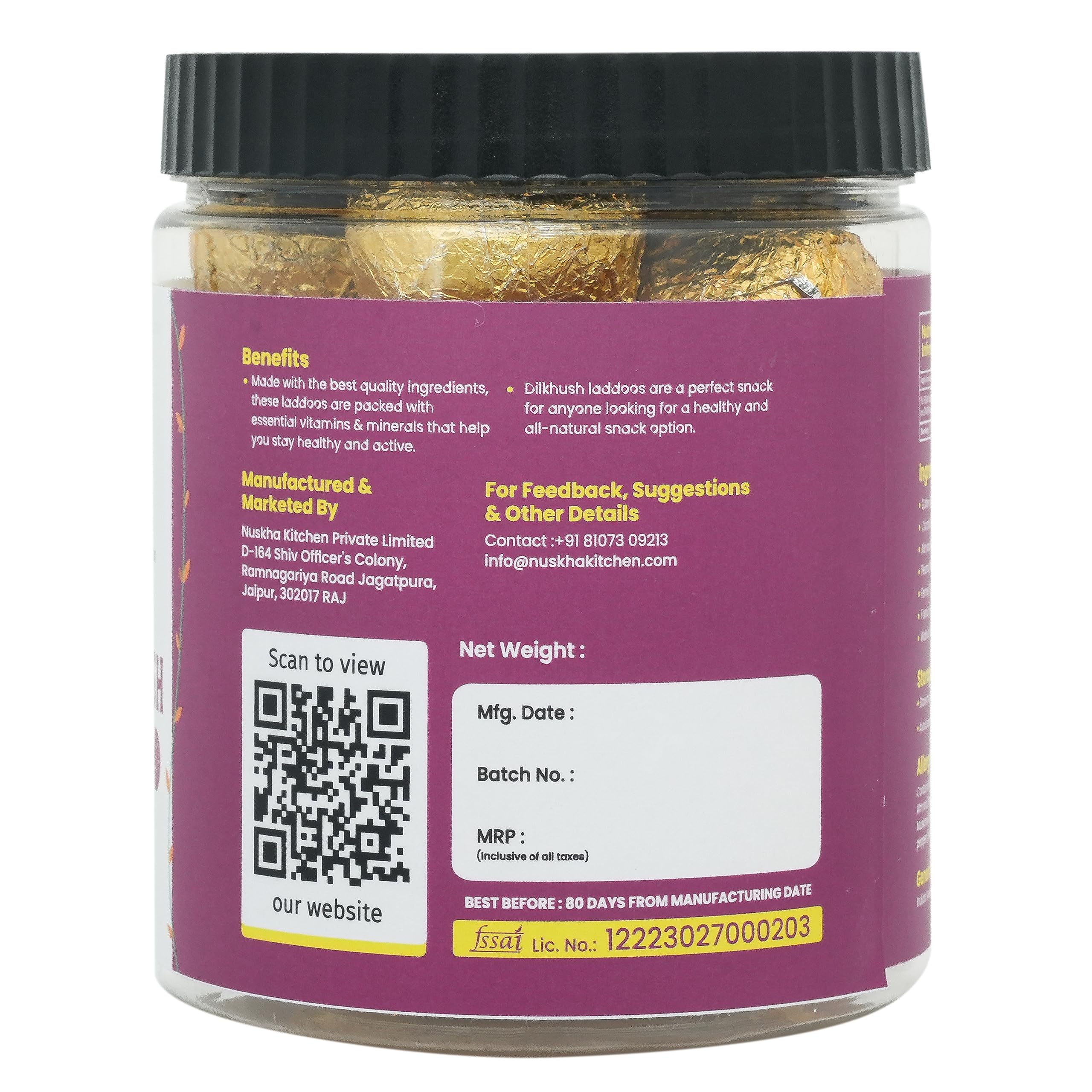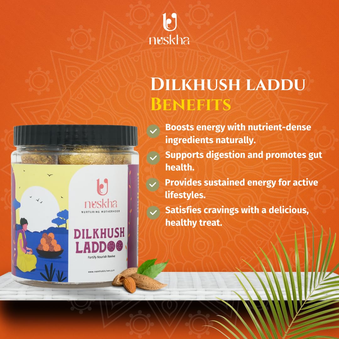 HomeGrocerySweetsIndian SweetsDilkhush Laddoo from Nuskha | laddu | Made with Premium Dry Fruits | No Added Preservatives | Rich In Carbohydrates & Proteins | Pure Desi Ghee 400gms