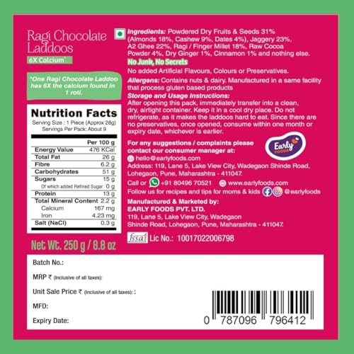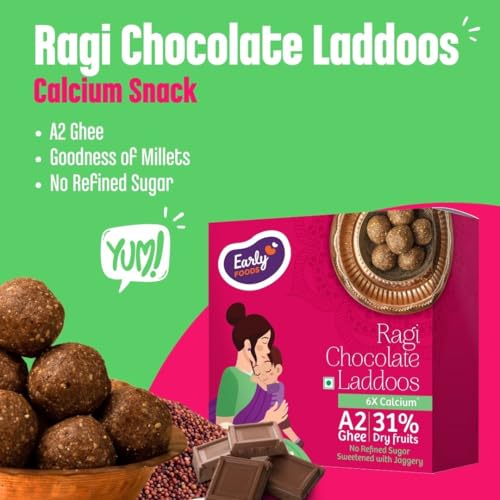 Early Foods - Ragi Chocolate Laddoos | Sugar Free Laddu | A2 Ghee Laddoos | Laddu for Mom to be | Laddoos for Nursing Moms | 66% Dry Fruits & Seeds 250 gms