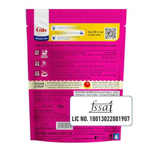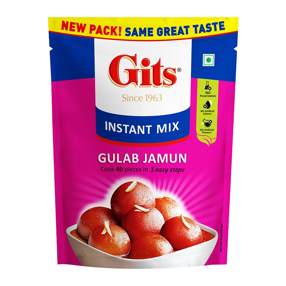 Gits Instant Gulab Jamun Dessert Mix, Makes 40 per Pack, Pure Veg, Delicious Indian Dessert and Mithai, 200g