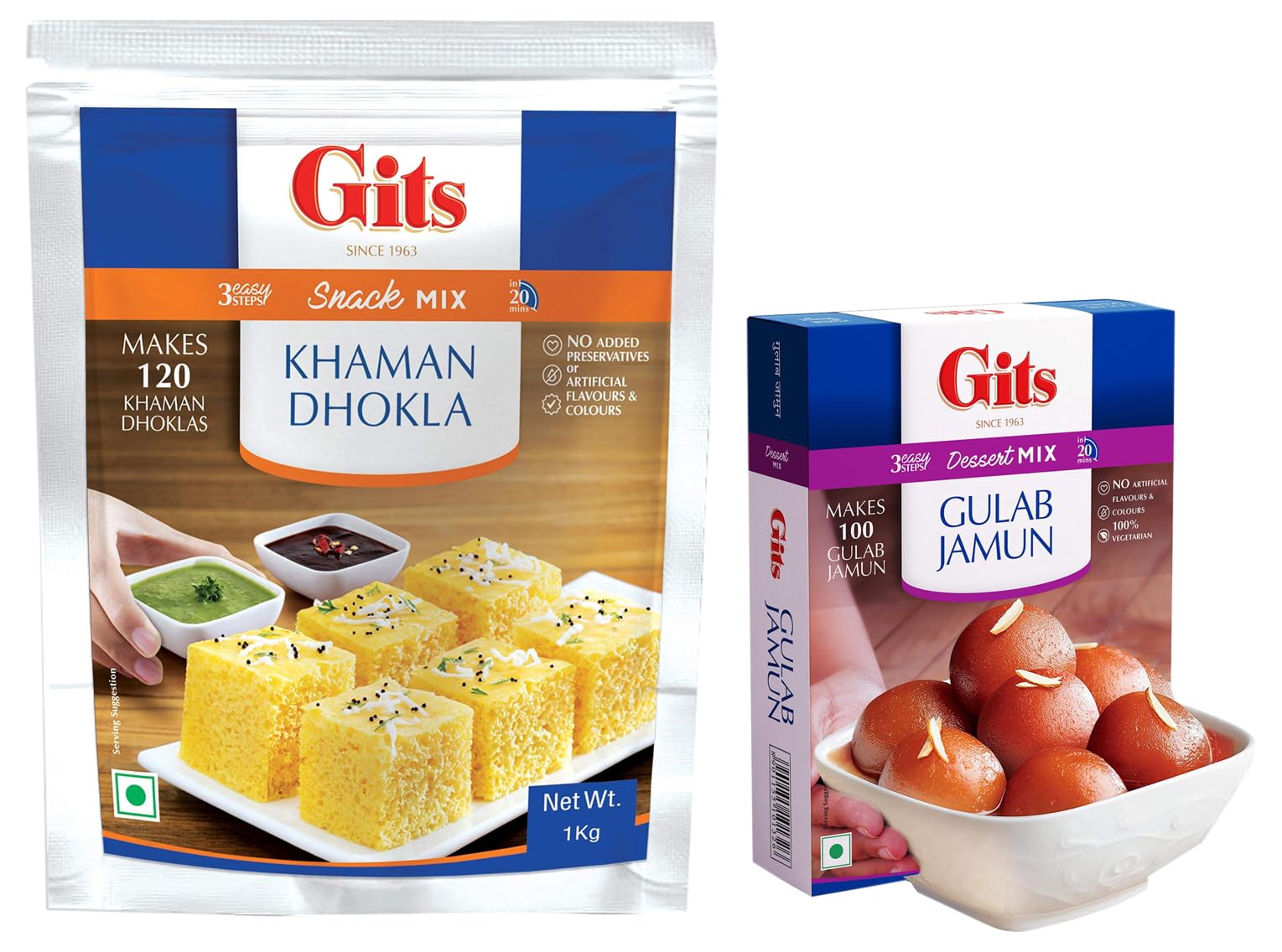 Gits Instant Gulab Jamun Dessert Mix Makes 100 per Pack Pure Veg Delicious Indian Dessert and Mithai 500gThis Gits Instant Gulab Jamun Dessert mix is formulated using the best recipes to make sure that you end up with soft and juicy Gulab Jamuns that melt in your mouth. The 500-gram pack of this Gulab Jamun mix can provide up to 100 delicious Gulab Jamuns for a big family gathering. For best results it is recommended that the instant mix powder be mixed with water made into a soft dough fried in pure ghee and soaked in sugar or sweet syrup for at least 30 minutes. Since this is a 100% vegetarian preservative-free and artificial colours and flavor-free mix it is a great addition to your kitchen for unexpected guests and special occasions. Add some vanilla ice cream to a bowl of Gulab Jamuns and feel the wonderful combo of flavours. Gits dessert ready mixes are made using the finest ingredients and with the suggested recipes you can make fantastic homemade Indian mithais. A 3-generation family-owned business Gits can help you make perfect delicious and flavour-filled Indian sweets and savouries.