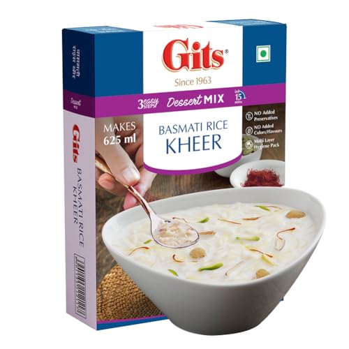 A Favorite Indian Dessert Made From Milk And Rice Gits Basmati Rice Kheer Can Be Relished Hot Or Cold! It Has A Thick And Creamy Texture And Is Garnished With Almonds Pistachios And Raisins. This Mix Has Notes Of Saffron And Cardamon For Enhanced Flavors. From All Festivities To Sweet Endings To A Meal Basmati Rice Kheer Can Be The Perfect Dessert!Gits Have Been A Pioneer And One Of The 1St Indian Food Manufacturing Companies To Bring Instant Food Mixes And Have Been Providing The Best Quality And A Wide Range Of Products In The Ready Meals Instant Mixes Open & Eat Desserts And Dairy Categories To Our Consumers Since 1963. You Can Be Sure Of The Product When You Know It Is From The House Of Gits.
