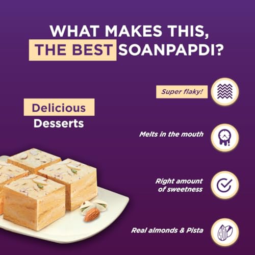 Raksha Bandhan New Year Diwali Holi Independence Day and many more festivals are incomplete without the Gits Ready to Eat Soan Papdi sweet. Brought to you by master sweet maker Gits this Soan Papdi dessert is extra flakey with the right amount of sweetness and is topped with real almonds and pistachios. This Indian mithai comes in a pack of 400g - guaranteed to melt in your mouth. It is 100% vegetarian free of preservatives artificial flavours and colours. Not only does Gits Soan Papdi serve as a welcome sweet for guests during festivities but it can also be an after-food Indian dessert for friends and family during a get together. Soan Papdi is considered as a low-sugar sweet and is free of trans fats. Gits desserts are cooked with the best quality ingredients and are packed carefully in boxes that keep the contents fresh and ready to eat. Gits has been touching the lives of millions of families across the world by bringing forward tasty sweets and savouries that leave customers longing for more.