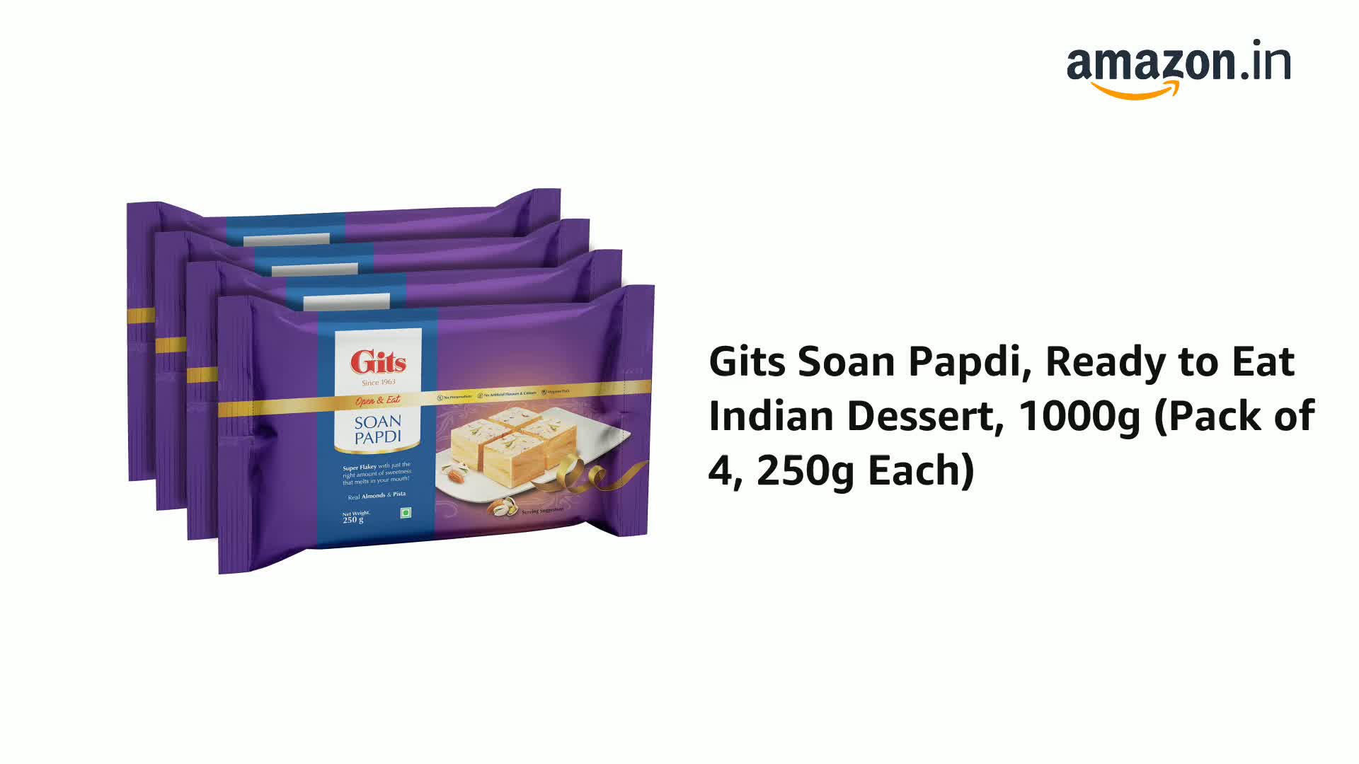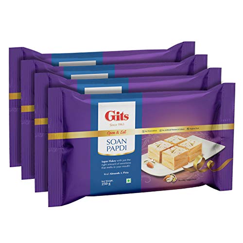 Gits Soan Papdi, Ready to Eat Indian Dessert, 1000g (Pack of 4, 250g Each)