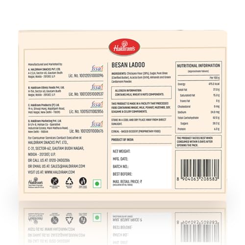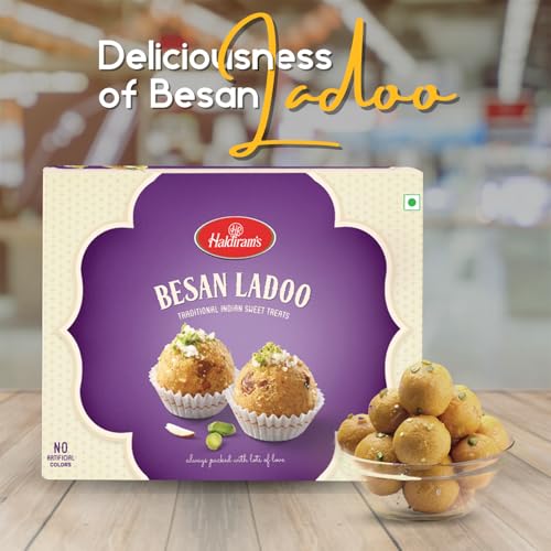 HomeGrocerySweetsIndian SweetsHaldiram's Besan Ladoo 400g | Authentic Laddu Taste | Made with Premium Ingredients | Handcrafted Indian Traditional Sweets | Indian Mithai | Fresh Products | Great Sweets Gift Pack for Festival