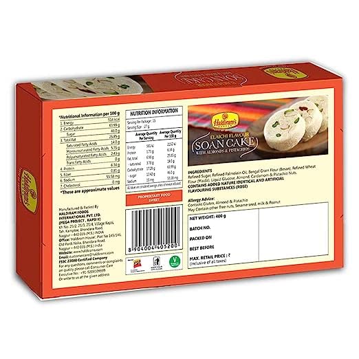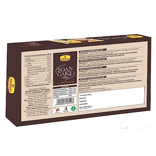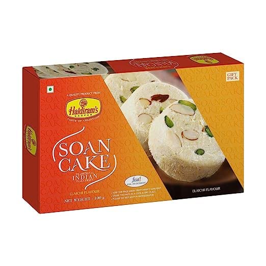 Haldiram's Soan cake is a delicious sweet with a smooth crunchy texture that melts in the mouth easily. It is usually served as a dessert or snack. It is also the best gift for festivals and special occasions in India. Here we provide five combo flavors of Soan cake: mango chocolate orange elaichi and pineapple.