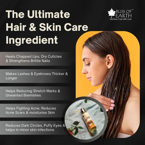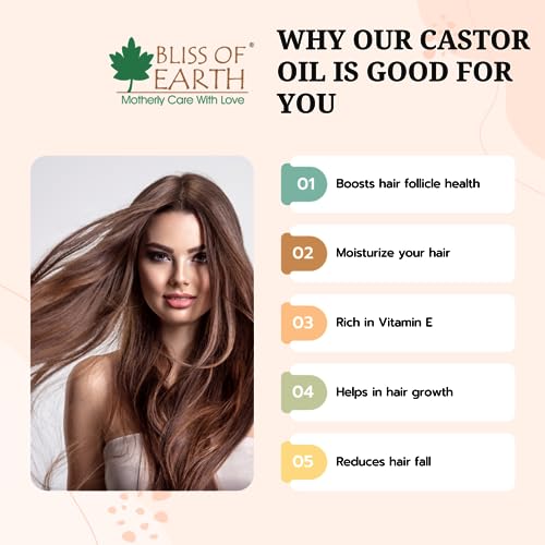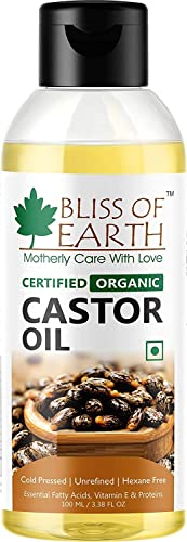 Bliss of earth certified organic castor oil is expeller pressed (Cold Pressed) from the seeds of Ricinus Cimmunis which are directly sourced from the organic farms. It is a moisturising topical oil containing unsaturated fatty acids that offer a multitude of beautifying benefits for the face skin hair and nails. It is loaded with anti-oxidants & vitamins including vitamin E making it powerful anti-aging agent. It increases blood circulation to the skin increases hair growth and restores a youthful radiant glow to your skin. This cold pressed and unrefined virgin oil is free of fragrance chemicals or preservatives for unmatched purity and efficacy. From anti-inflammatory to anti-aging benefits bliss of earth castor oil is unmatched in addressing skin ailments treatments and much more.