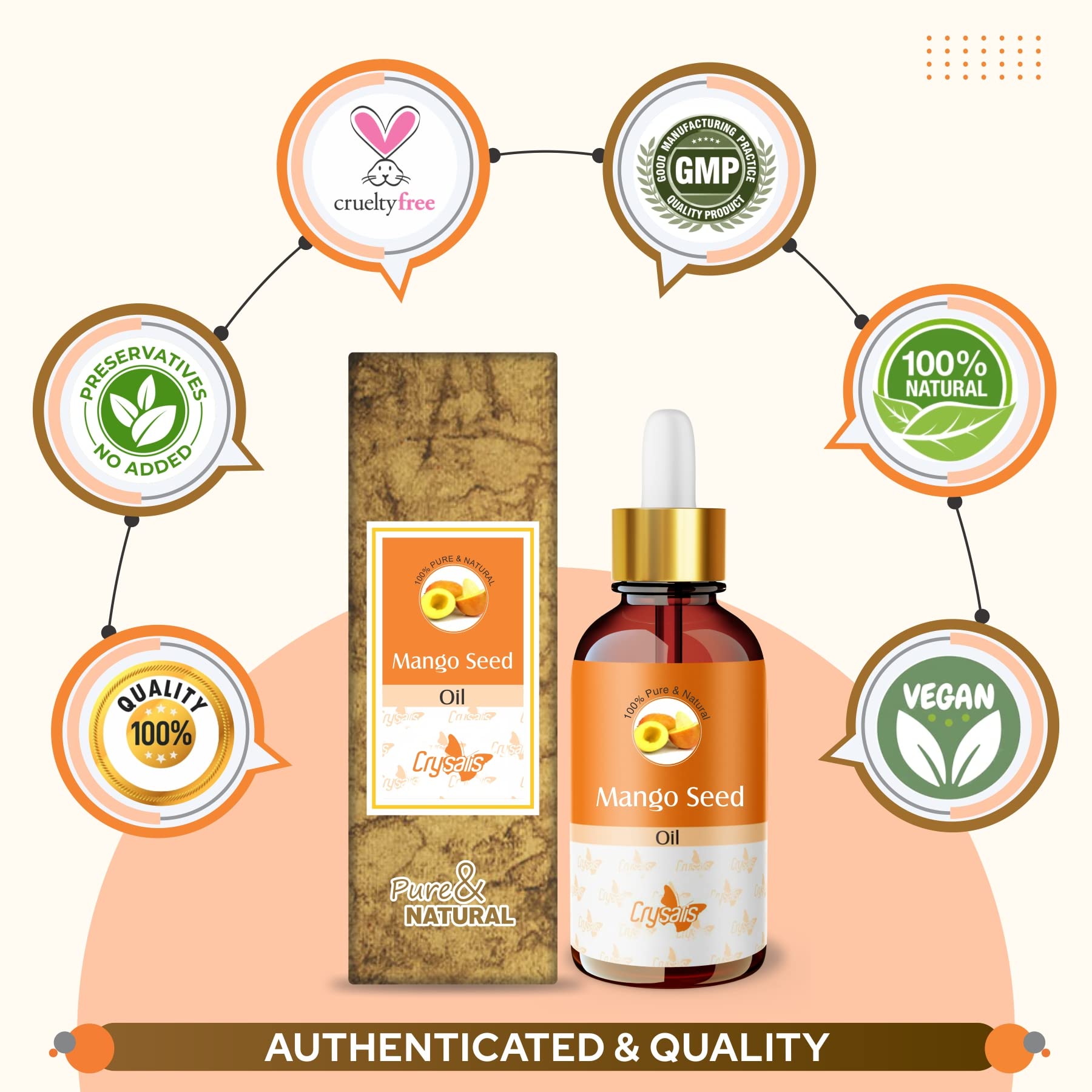 Crysalis Mango Seed (Mangifera Indica) |100% Pure & Natural Undiluted Carrier Oil Organic Standard/Cold Pressed Seed Oil For Glowing Skin Healthy Hair Nourished Face - 30Ml With Dropper