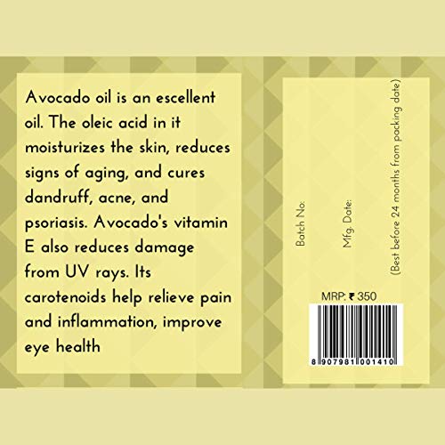 Oilcure avocado oil is a pure carrier oil. It is rich in vitamins A E and D. It is loaded with various antioxidants. It is great for skincare haircare as well.