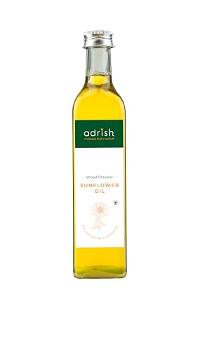 Adrish Zerowaste Wood Pressed Sunflower Oil - (1Ltr) - Organic | Unrefined Cooking Oil| Wooden Ghani | High in Anti-Oxidants | Kachi Ghani Sunflower Oil | Glass Bottle
