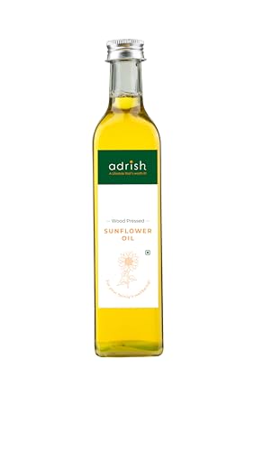 Adrish Zerowaste Wood Pressed Sunflower Oil - (500ml) - Organic | Unrefined Cooking Oil| Wooden Ghani | High in Anti-Oxidants | Kachi Ghani Sunflower Oil | Glass Bottle