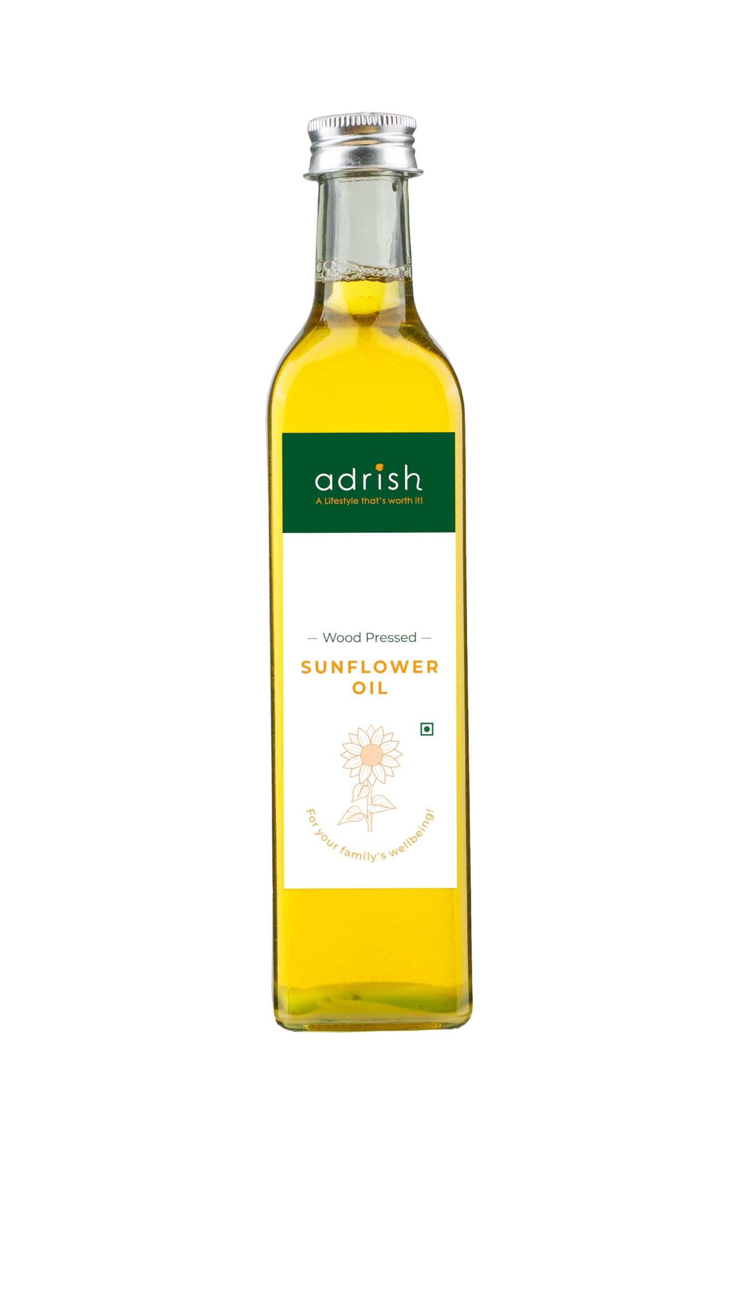 Adrish Organic Sunflower Oil is extracted in Wooden Ghani by using ancient cold-pressed technology.