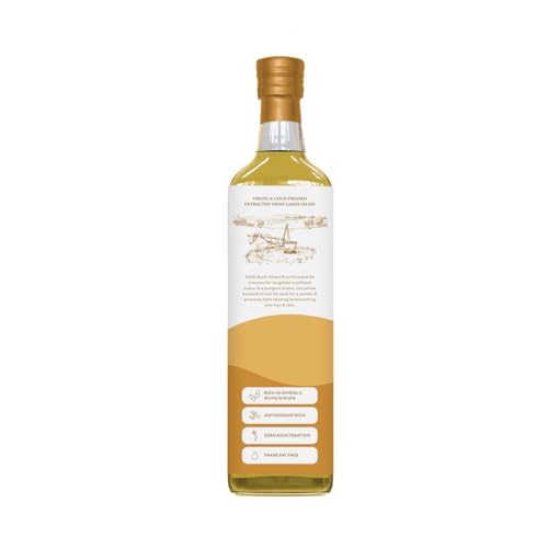 Extracted from organic mustard seeds Adya Organics Kachi Ghani Mustard Oil is the golden oil of purity. This mustard oil is extracted from the seeds using the traditional method in Kohlu' where bulls are used to rotate a bamboo roller under low temperatu
