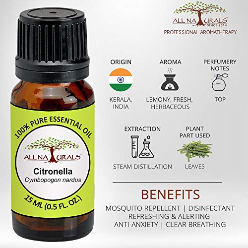 100% pure oil of Citronella. OVERVIEW & BENEFITS: Citronella comes from the same family as lemongrass however is proven to be more effective against mosquitos. No wonder it goes into almost all mosquito repellent sprays creams and coils. Our citronella Essential Oil comes straight from Kerala and has a citrus and uplifting aroma with mildly fresh notes. A few drops in your diffuser or your washing machine keeps mosquitoes at bay.The best oil for making your home mosquito free.
