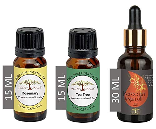 All Naturals 3-in-1 Haircare, Dandruff & Skin Nourishing Kit | Rosemary & Tea Tree Essential Oils (15 ML each) and Argan Carrier Oil 30 ML