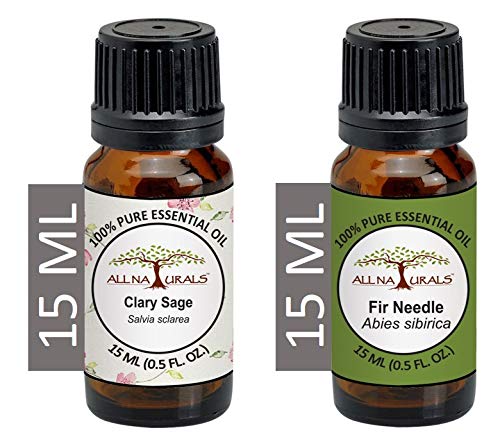 ALL NATURALS Forest Fragrances Combo | Clary Sage & Fir Needle Essential Oils (15 mL each) | 100% Pure Undiluted Therapeutic Grade for Aromatherapy Massage Skin & Hair