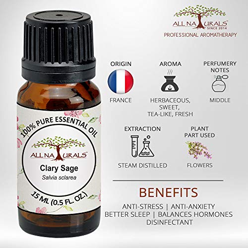 All Naturals - Clary Sage Essential Oil (15ml) | Aromatherapy, Skin & Hair Health | No Preservatives or Additives | Home Fragrance for Women & Men