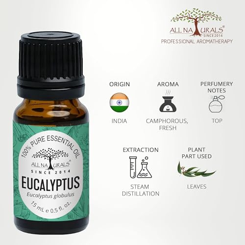 OVERVIEW & BENEFITS: Known as âNilgiri Tailam" in Hindi (Nil means blue Giri means mountain Tailam means oil) this oil is extracted from Eucalyptus trees growing abundantly in the magical Nilgiri Mountain range in Southern India. EXTRACTION METHOD: Steam Distillation; PLANT PART USED: Leaves; ORIGIN: Ooty India; COLOR: Clear to Pale Yellow PERFUMERY NOTES: Top; FRAGRANCE: Camphorous medicinal woody earthy. AUTHENTICITY PROMISE: We work very hard to source our essential oils only from farms that have their own distilleries to ensure that aroma and medical properties are retained during distillation. Each new variety is randomly tested for 3 months by perfumers aromatherapists massage/beauty practitioners random customers and in the lab for aroma quality & consistency before launch. We do not use any chemical fixatives to enhance the aroma. SAFETY & STORAGE: This is a concentrated 100% pure essential oil and MUST NOT be ingested or consumed internally. Do not apply directly on skin. Always dilute in a carrier oil like coconut jojoba almond apricot oil creams or lotions. Keep Away for direct flame. Always dilute in water when using in tealight or electrical aroma diffusers. STORAGE: Some Essential Oils are photosensitive in nature hence store this product in a cool & dark place. Keep away from children.
