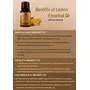 Lemon essential oil is called 'liquid sunshine' for a reason. Itâs fresh the citrusy scent has mood uplifting properties which can wash away your blues. When massaged into your skin it can give you a clearer complexion. When used as a perfume it can mask bad odors and leaves you smelling fresh. When used as a bath oil it can rejuvenate and gently cleanse your skin. Use it as a massage oil to improve blood circulation. Diffuse this citrusy charm that can clear your mind when you are feeling stressed. It can bring clarity of thought in anxious situations. INGREDIENTS Lemon Essential Oil is obtained by the cold compression of fresh lemon fruit peels. It has a sharp yet fresh smell. Our lemons come straight out of our sustainable organic farm which makes our essential oil pure and therapeutic grade.