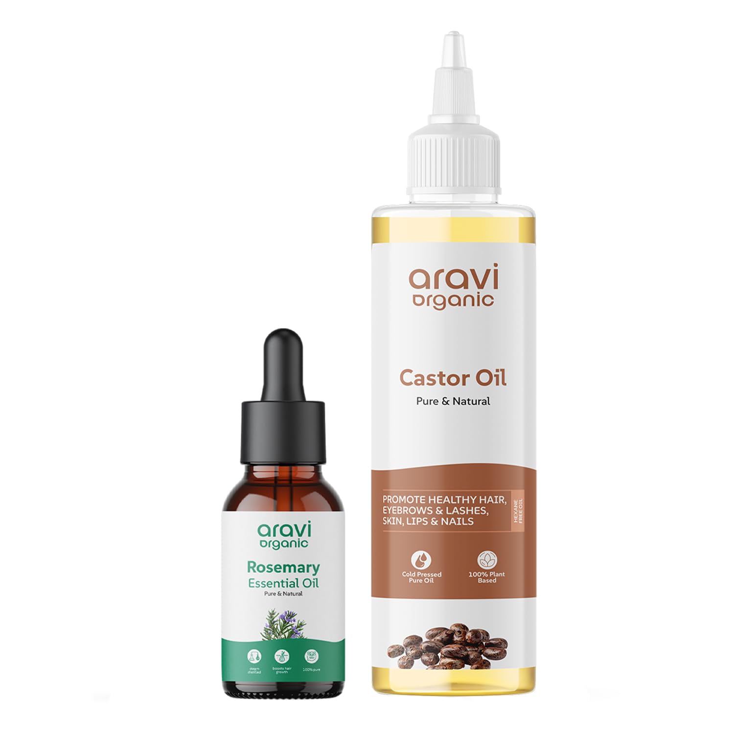 Aravi Organic Pure Rosemary Essential Oil 15ml And Pure Castor Oil 200ml Hair Growth Combo (Pack of 2)