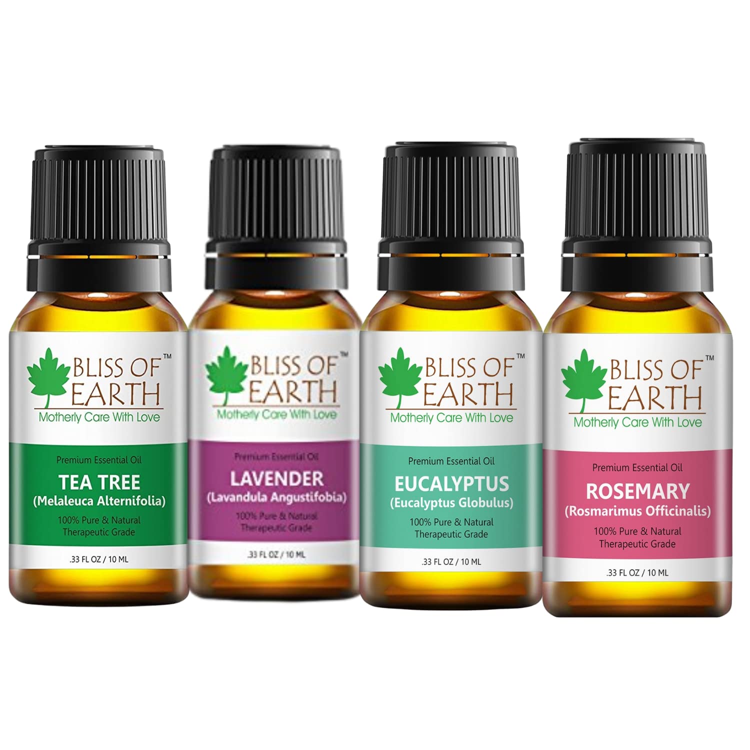 Bliss of earth 100% Pure Natural Tea Tree+ Lavender Eucalyptus & Rosemary Essential Oil Therapeutic Grade 10ml combo (pack of 4)