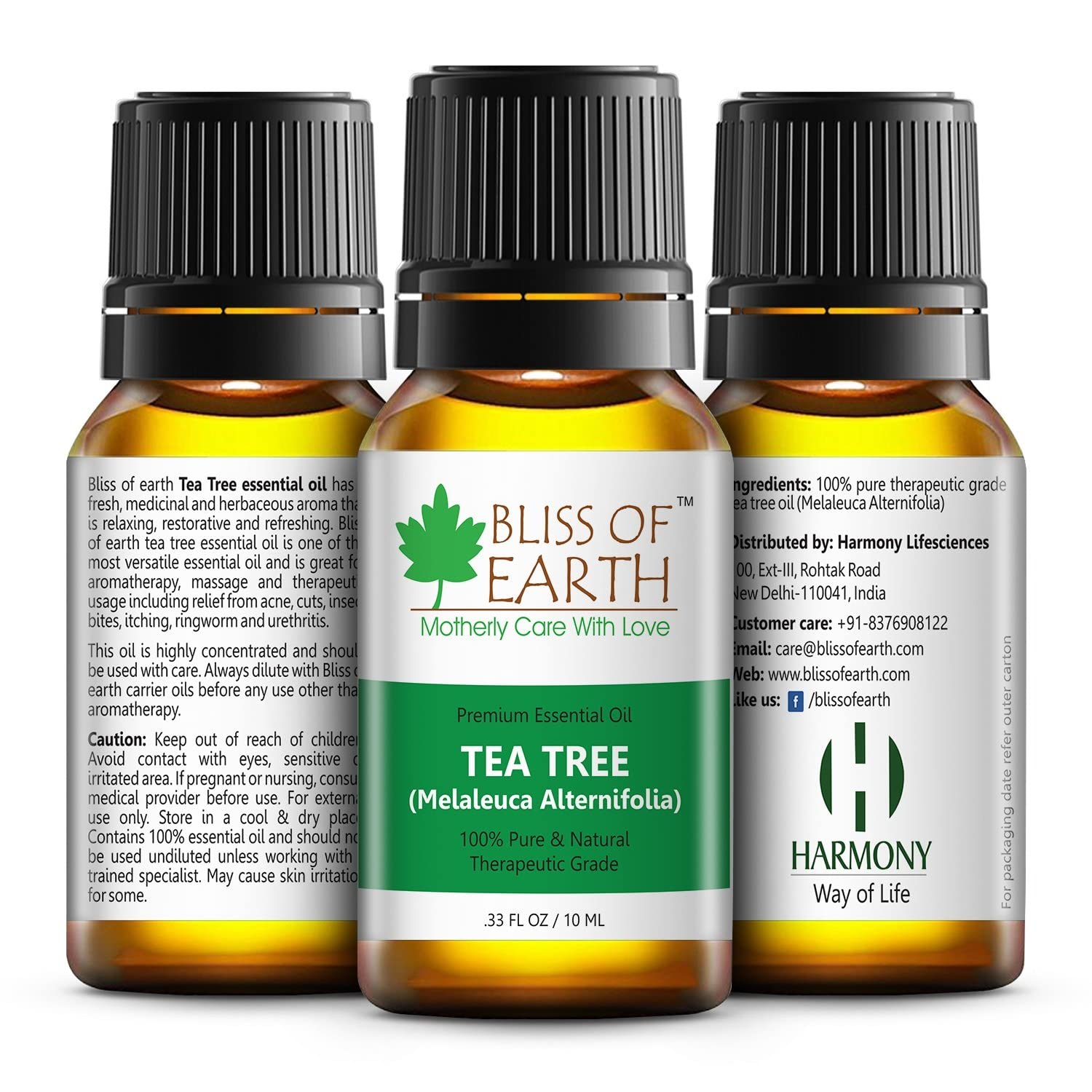PREMIUM QUALITY OIL: Bliss of earth Tea Tree essential oil is extracted by steam distillation of Tea Tree leaves. We follow strict guidelines to protect the natural properties of the oil during extraction and packaging. Our oil is therapeutic grade for ma