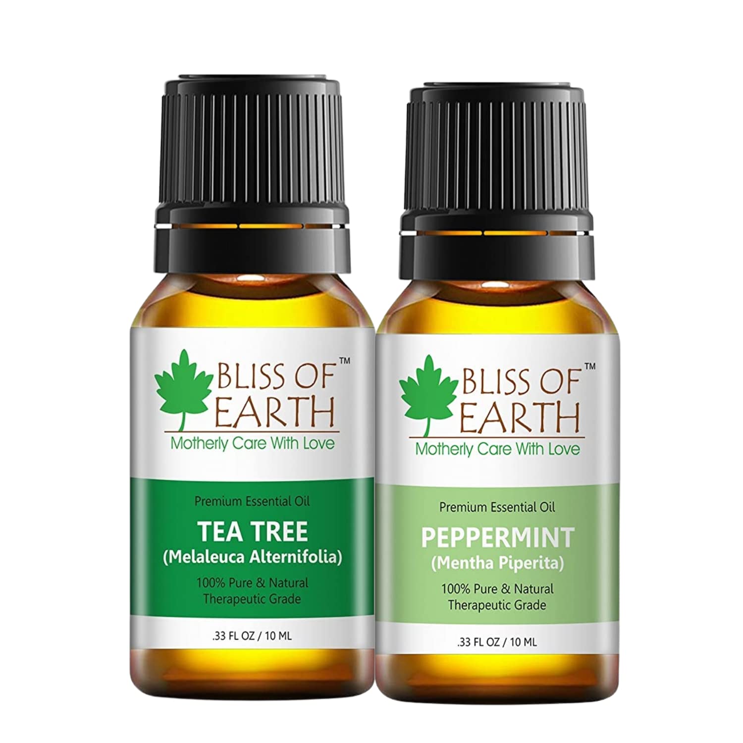 Bliss of Earth Australian Tea Tree Essential Oil . "Bliss of Earth Peppermint essential oil has a fresh minty and reminiscent of peppermint candies aroma which is relaxing restorative and refreshing. Bliss of Earth peppermint essential oil is one of the most versatile essential oil and is great for aromatherapy massage and therapeutic usage including relief from nausea headache. This oil is highly concentrated and should be used with care. Always dilute with bliss of earth career oils before any use other than aromatherapy."