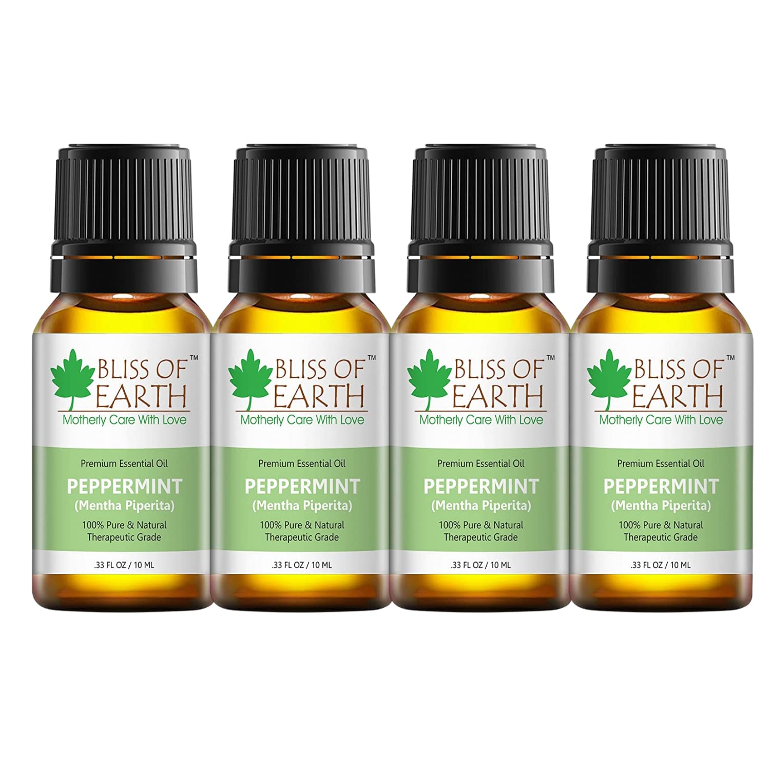 Bliss of Earth Premium (Mentha Piperita) Essential Oil 4x10ml 100% Pure & Natural Therapeutic Grade (Pack of 4)